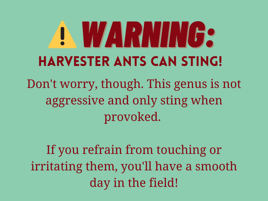Not sure if the ant you found is a harvester ant or not? Upload your submission to the Harvester Hunt iNaturalist project anyway!